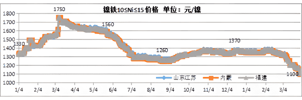 中国大陆不同省份镍铁价格
