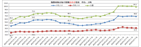 3月份,部分钢厂出现检修停工,但减产、去库存效果一般。 市场库存维持在较高水平,高库存始终给市场带来压力。 钢厂的库存没有减少,反而有部分钢厂增加,显示整体需求将持续疲软。